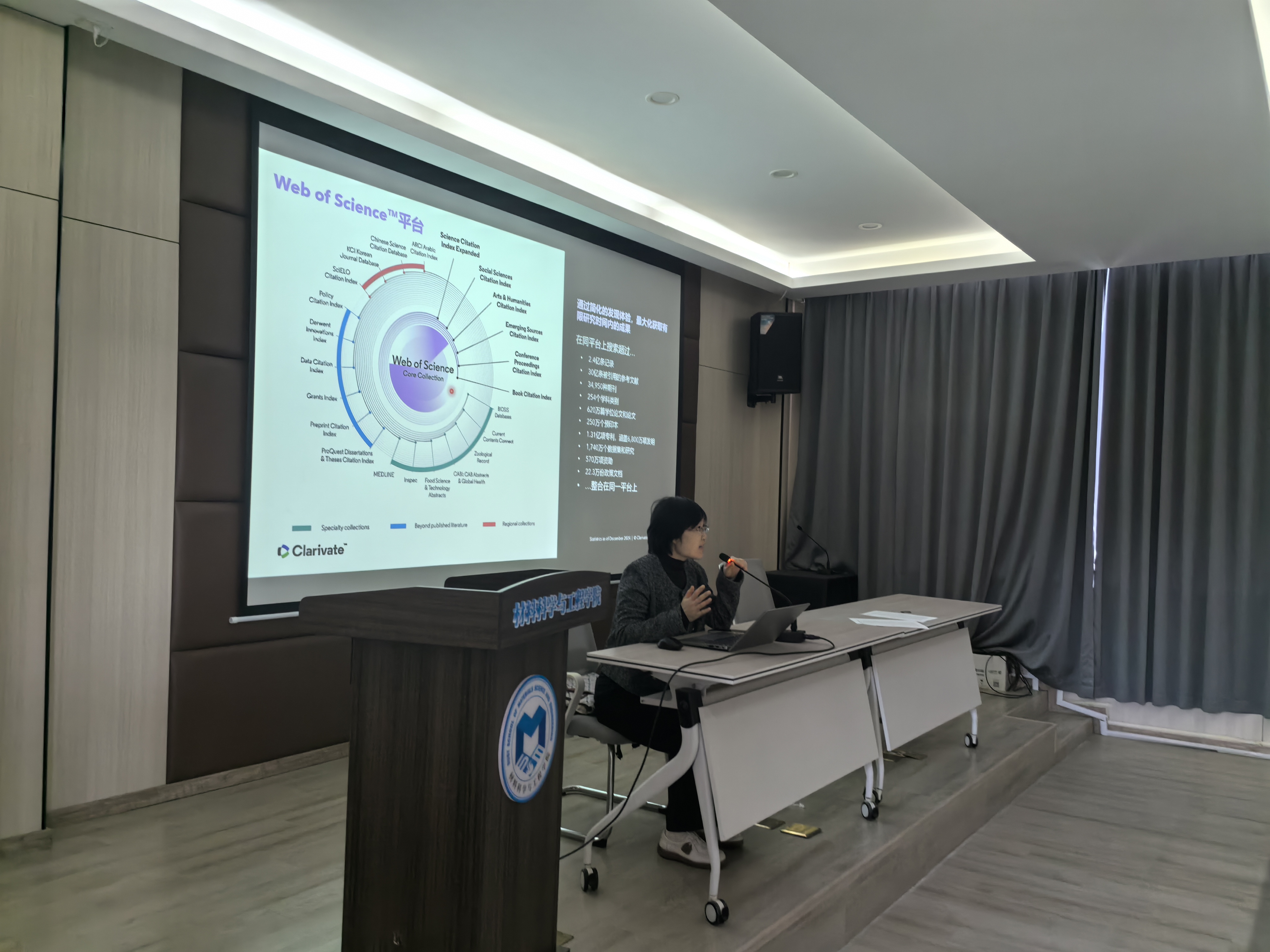 为助力学生提升信息检索与利用能力,夯实科研学习基础,图书馆于10月29日下午两点携手科瑞唯安专业培训团队,走进材料科学与工程学院,为该院研一新生举办了一场题为“工欲善其事,必先利其器——Web of Science助力高效科研之旅”的培训讲座,受到了材料学院师生的热烈欢迎。
