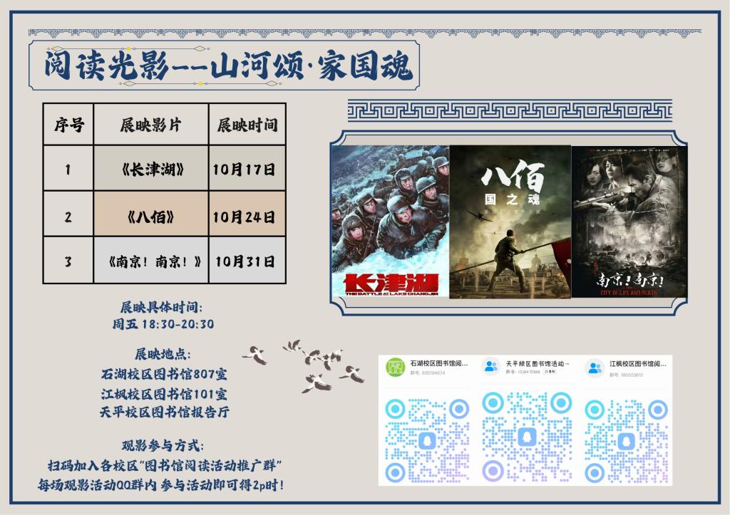 十月阅读光影:山河颂·家国魂之爱国主题电影展映