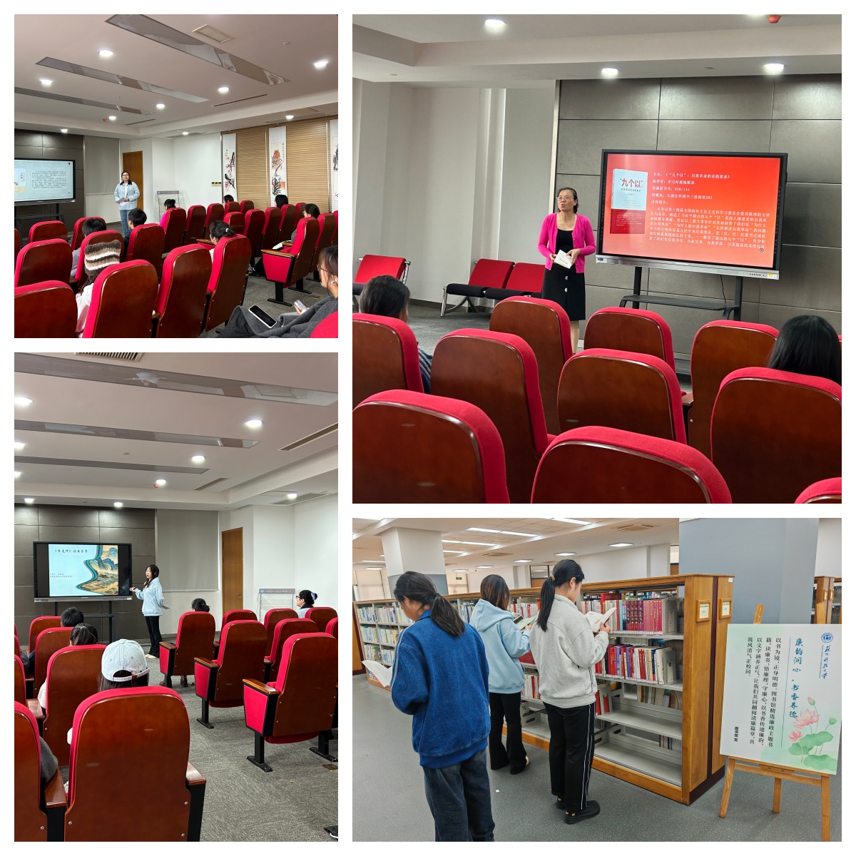 随后,来自文学院的吴颖同学和社会发展与公共管理学院的杨晶晶同学分别围绕《古诗文里的廉政大智慧》和《廉吏传》两本书进行了专题分享。她们结合自身阅读感悟,带领同学们走近那些触动心灵、警醒初心的文字,讲述廉吏们坚守初心、廉洁奉公的动人事迹。故事引发现场同学共鸣,大家纷纷表示要在日常生活中自觉践行廉洁自律,树立社会责任感。