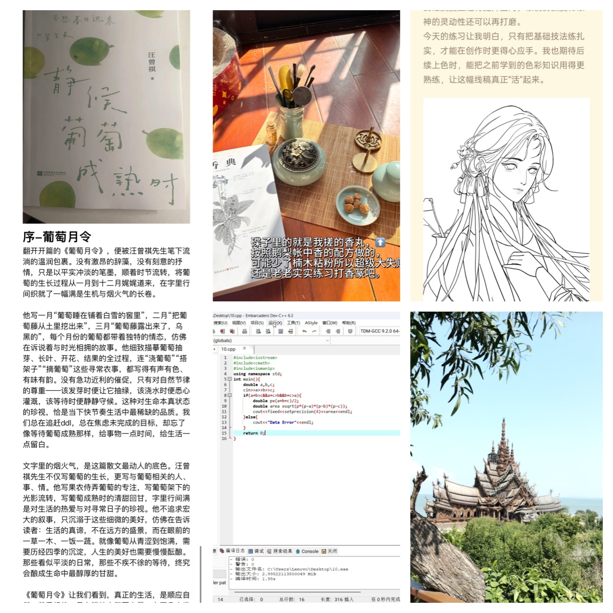 本次活动创新设计了“技能开箱”和“文化漫游”双维度阅读模式,让阅读不仅局限于书页,而是延伸至生活实践。学子们通过阅读技能类书籍,转化知识为实际能力,学会了烹饪、绘画、编程等新技能;或沉浸于文化、旅游类书籍,领略文明与自然风光,感受书本与现实的深度融合。参与者每天分享进步与感悟,创作了具有创意与深度的优秀作品,充分展现了苏科学子勤于阅读、乐于实践的良好风貌。