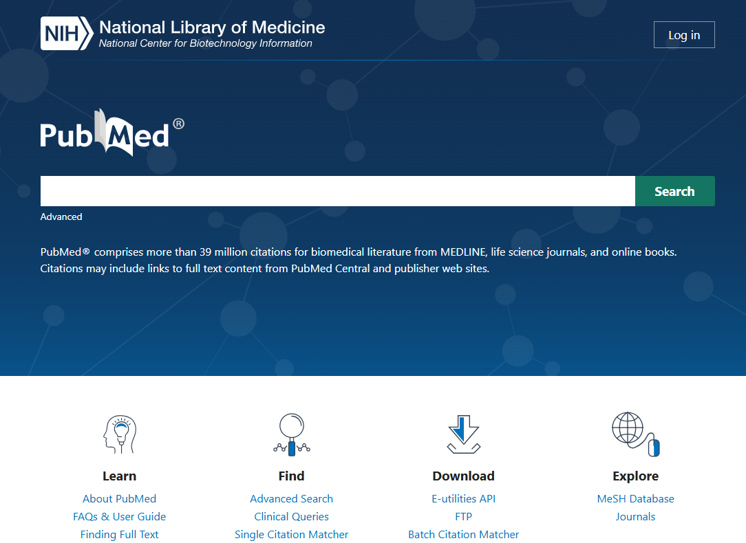 PubMed是由美国国立医学图书馆(U.S. National Library of Medicine)国家生物技术信息中心开发研制的基于Web的网上医学文献检索系统。该系统具有强大的检索和链接功能,是目前世界上查找医学文献利用率最高的网上免费数据库。